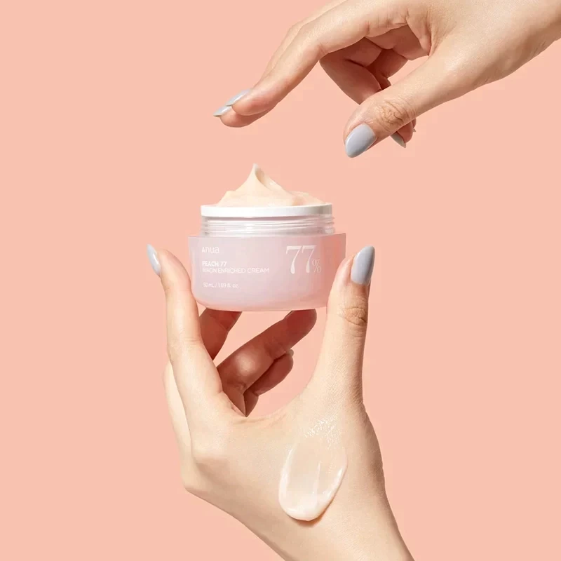 Anua Peach 77 Niacin Enriched Cream is a moisturizing cream formulated to give your skin a radiant, peach-like glow. This cream is designed to address common skin concerns, providing hydration without heaviness or stickiness. It incorporates the benefits of fermented peaches and three fermented ingredients to replenish moisture, enhance elasticity, and soothe the skin