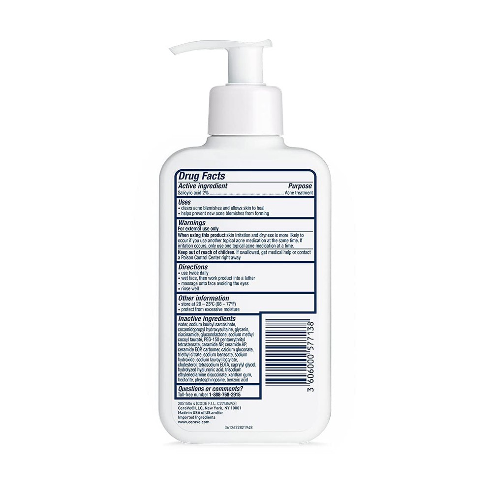 CeraVe is the #1 dermatologist-recommended cleanser brand for acne, and our new Acne Control Cleanser with 2% salicylic acid is formulated to clear acne, reduce blackheads and improve the appearance of pores, while purifying clay helps absorb excess oil. Featuring Oil-Absorbing Technology to minimize visible shine, this refreshing, gel-to-foam salicylic acid cleanser effectively removes dirt and excess oil, gently exfoliates and penetrates clogged pores to help prevent new acne breakouts. Acne Control Cleanser also maintains the skin’s protective barrier with 3 essential ceramides, calms the skin with niacinamide and reduces acne while leaving the skin soft, smooth and hydrated.