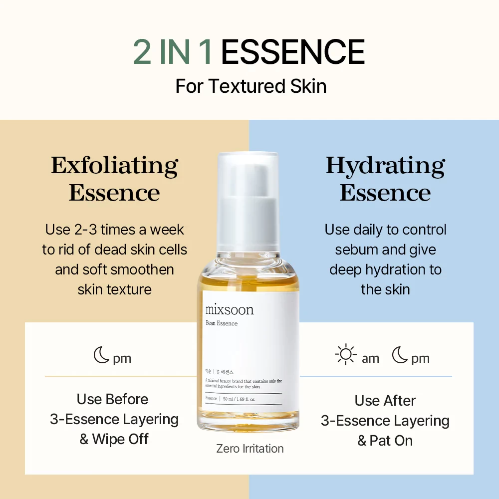 Mixsoon Bean Essence is the number 1 multi-tasking essence /exfoliator/serum that helps to bring dull skin back to life. The essence gently exfoliate your skin which remove dead skin cells and unclog pores while it provide intense hydration and nourishment. Formulated with Fermented Bean Extract (amino acids) known to protect damaged skin and strengthen the skin barrier. The hero product restores cracked, flaky, or dry skin and maintain overall skin health. The Natto texture quickly absorb to the skin to achieve a supply and glowing youthful-skin.