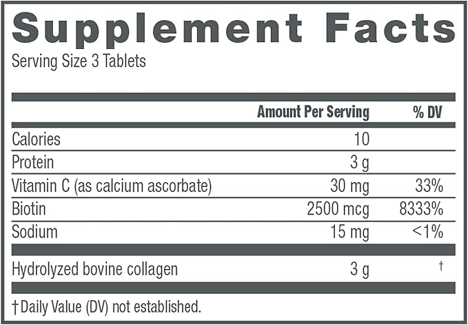 - HYDROLYZED COLLAGEN: Provides some of the amino acids our bodies need to make collagen and other proteins like keratin; which is found in our nails and hair*