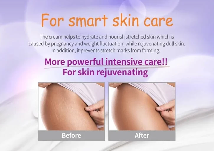 PAXMOLY Stretch Marks Therapy Cream (70g) ideal for use during and after pregnancy or weight loss. This cream helps to improve elasticity, prevent stretch marks and diminish the appearance of existing ones, leaving you with silky, supple skin. Loaded with nature derived sweet almond oil. This lightweight cream easily absorbed and can improve not only the texture of stretch marks but also overall scars on skin.