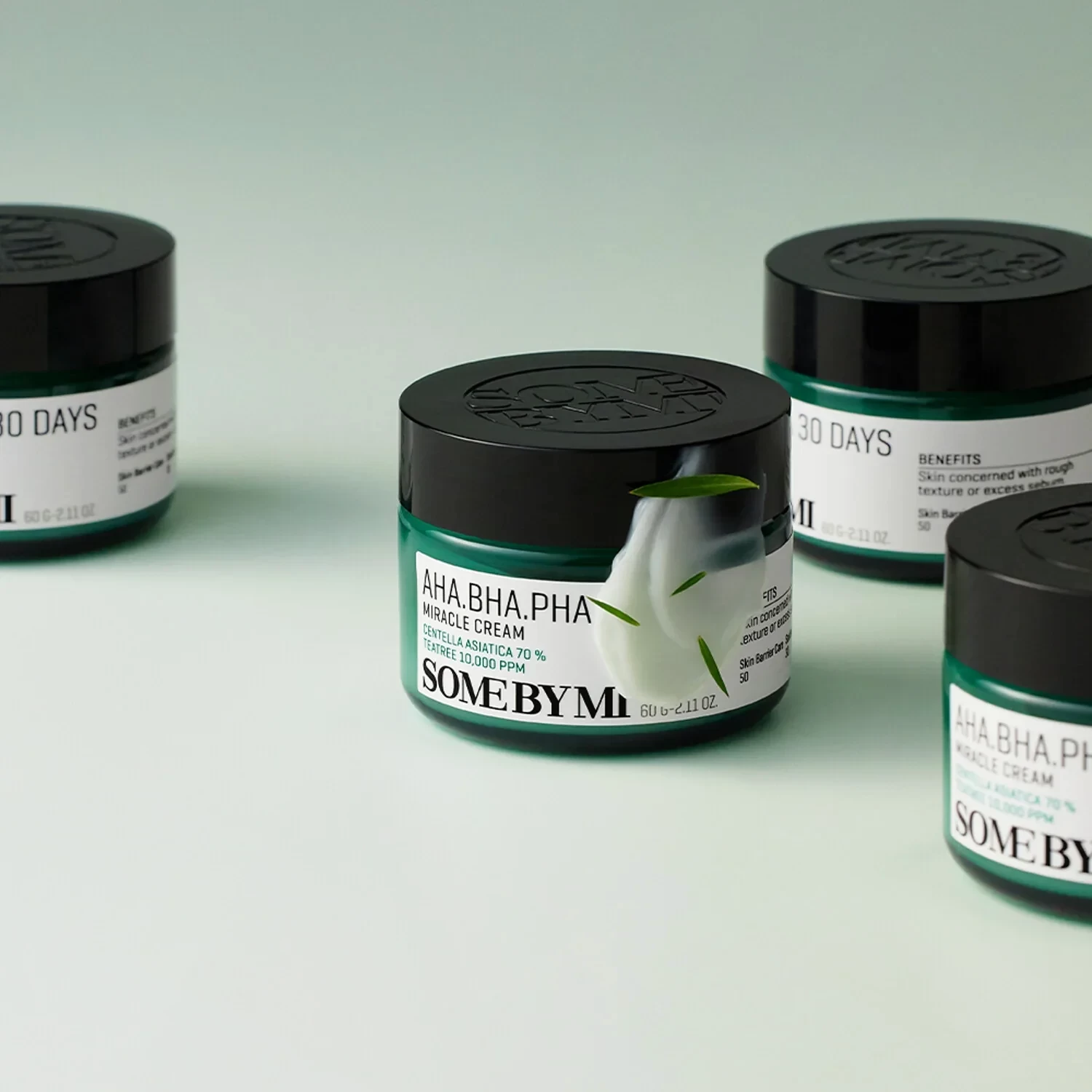 Some By Mi AHA BHA PHA 30 Days Miracle Cream marries nature and science in this incredible formula. This is the perfect treatment for blemish-prone skin that harnesses the power of AHA BHA PHA, Centella Asiatica and tea tree leaf extract.