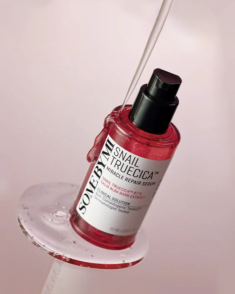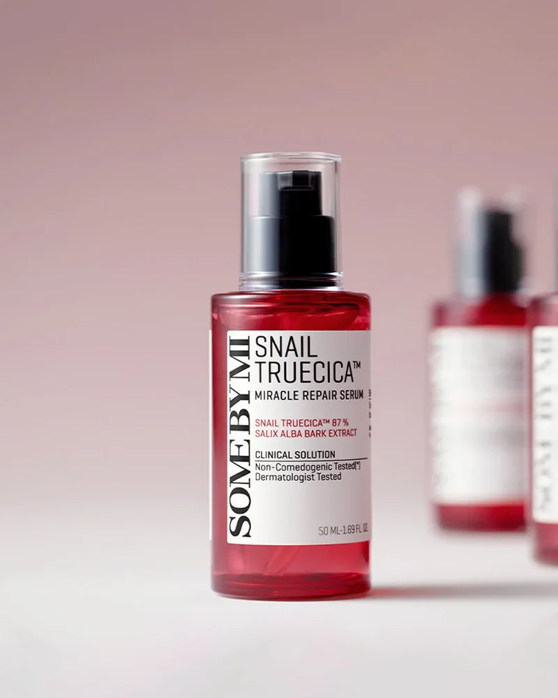 This is a Mucin essence, which contains 89% of Snail Truecica, which provides powerful skin energy through the combination of self-sustaining black Snail and SOMEBYMI's own Truecica technique, so it calms skin sensitive to external irritation and stress, and strengthens skin's natural strength by caring for skin problems.